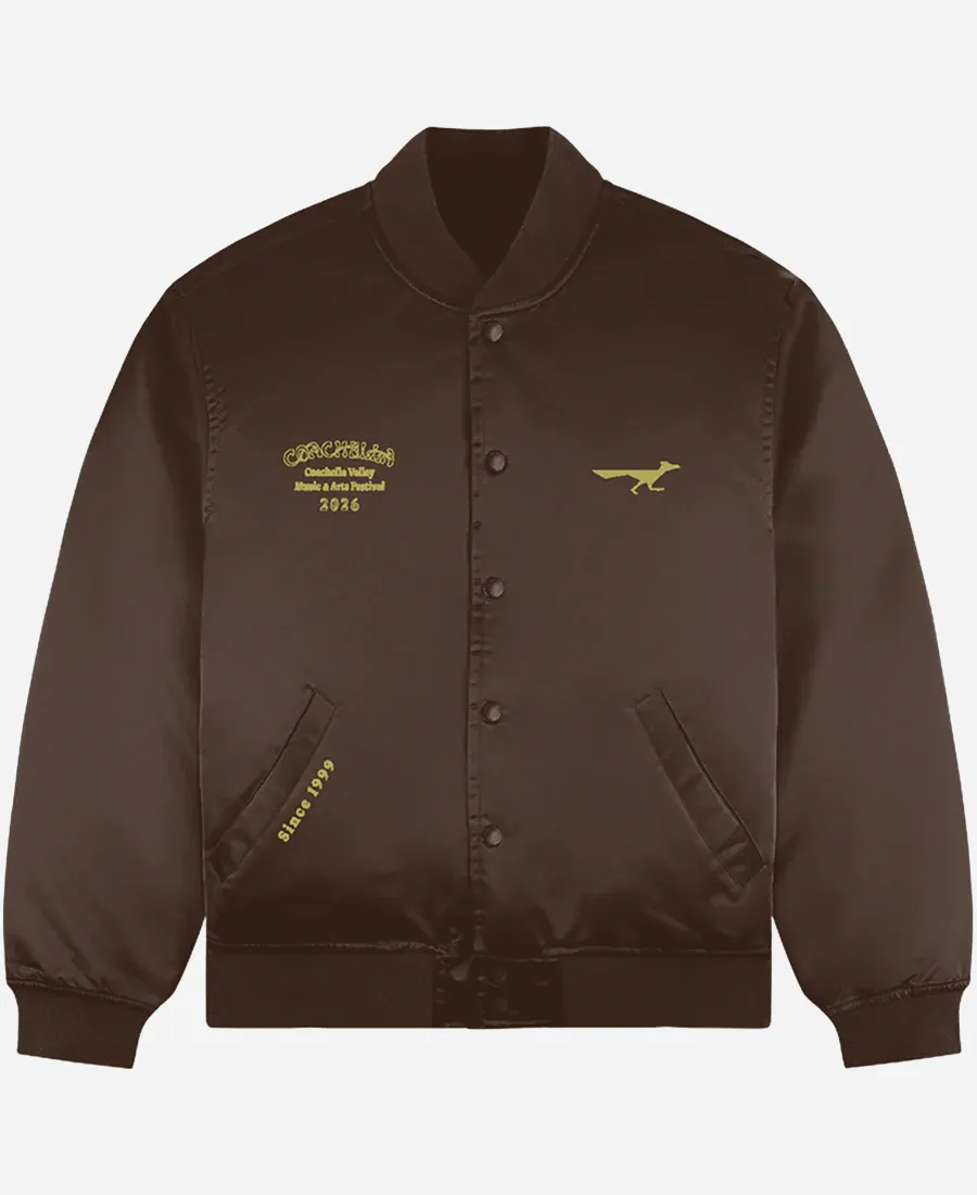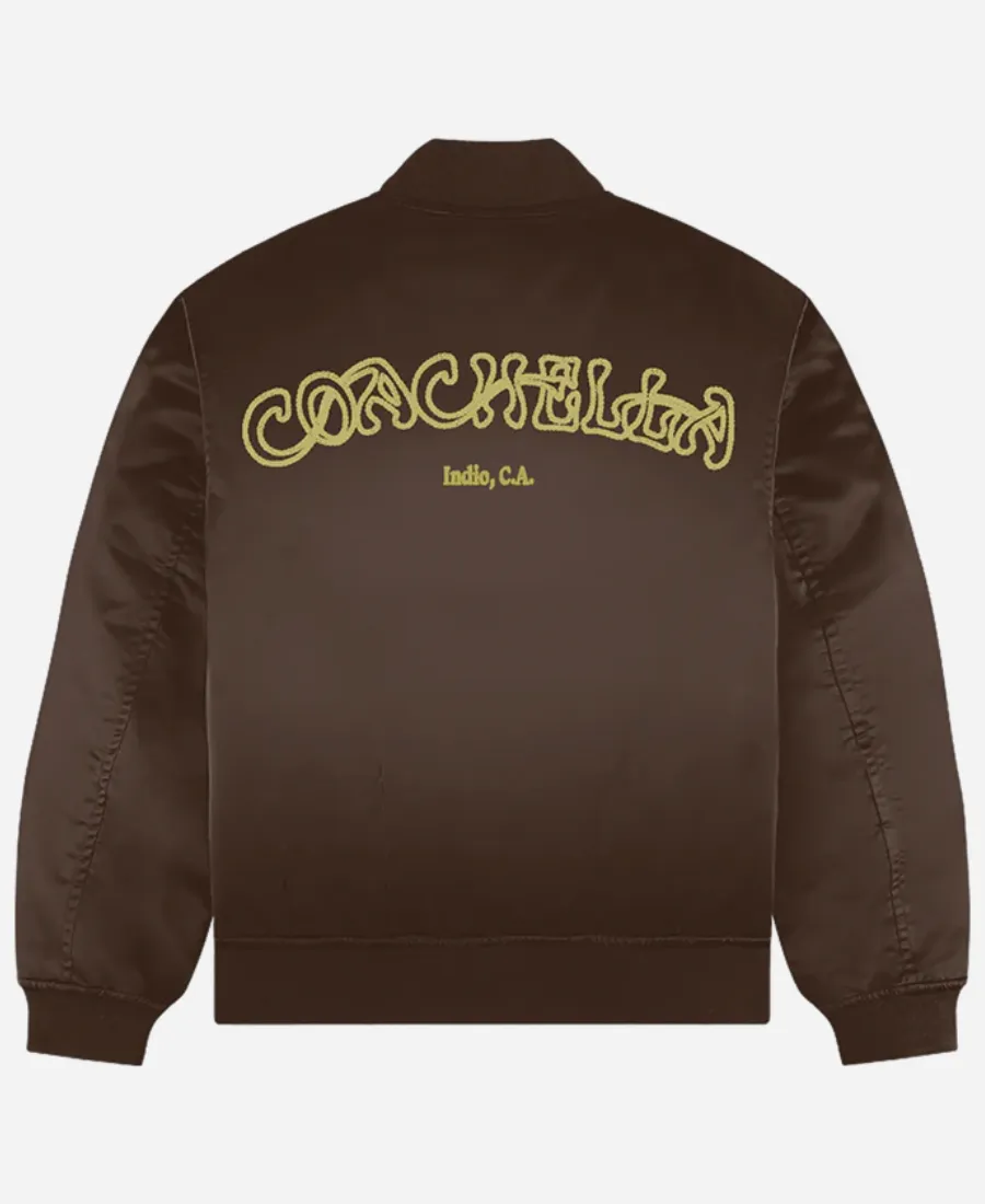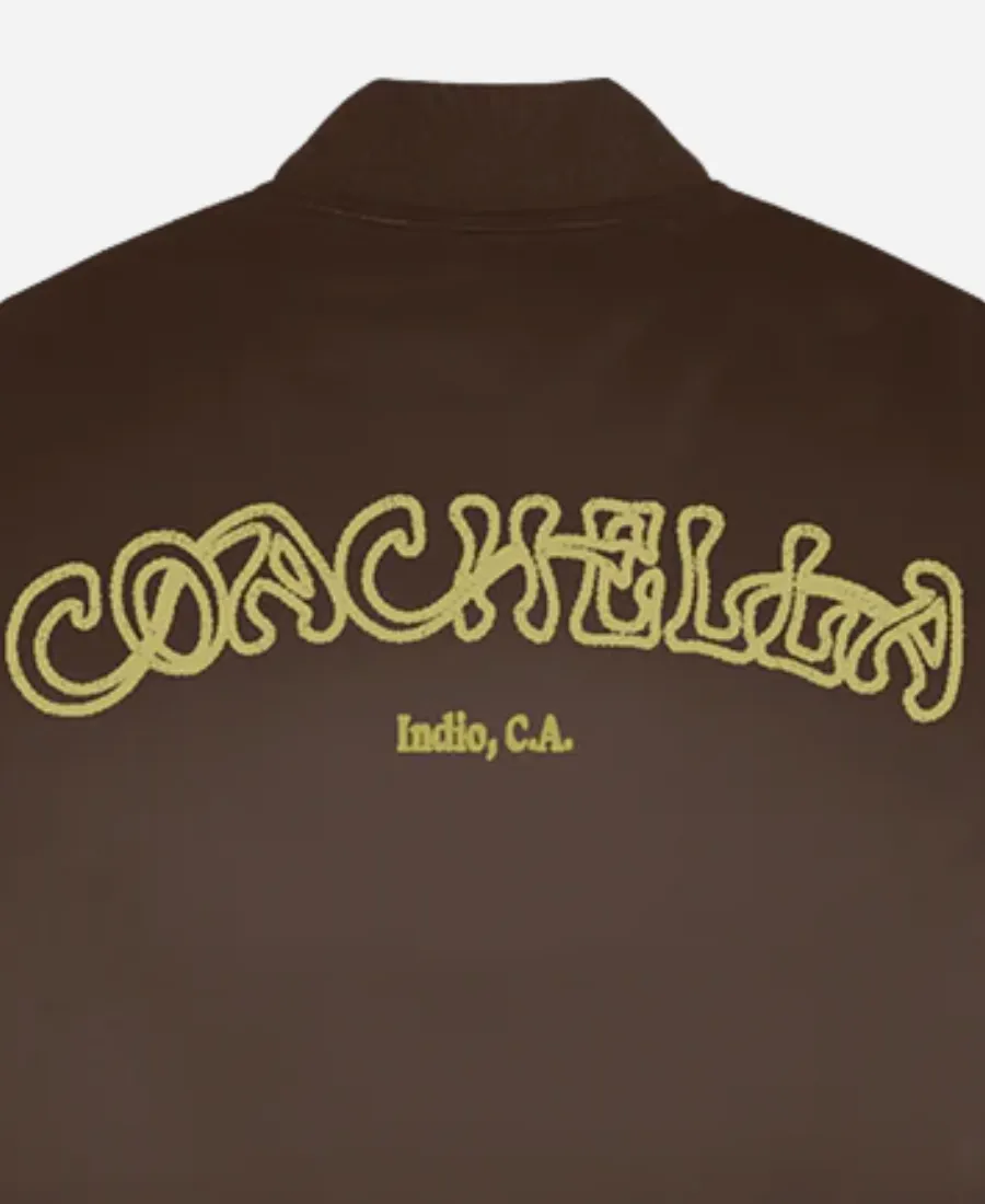 One of the standout features of this jacket is its full embroidery detailing on both the front and back. This gives it a premium, collectible feel and ties it directly to the 2026 festival identity. The espresso colorway adds a modern, versatile tone that pairs easily with festival outfits or everyday streetwear.