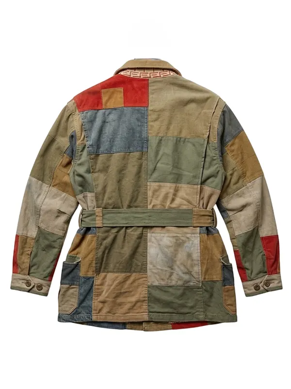 One of the most striking features of this jacket is its multicolor patchwork design. The combination of bold tones and contrasting panels creates a visually dynamic look that instantly grabs attention. This color-block aesthetic is inspired by vintage safari and field jackets, giving it a retro yet artistic vibe. Each piece often carries slight variations in color placement, adding uniqueness and character to the jacket, much like the original styles that inspired it.