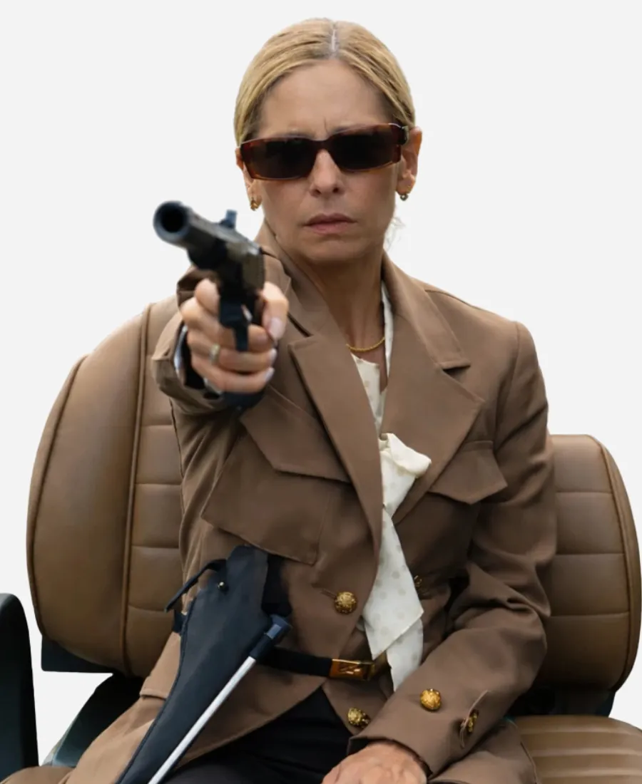 The Sarah Michelle Gellar Ready or Not 2 Here I Come Khaki Jacket is a sophisticated, character-inspired outerwear piece that reflects the sharp and commanding presence of Sarah Michelle Gellar in Ready or Not 2: Here I Come. Known for her role as Ursula Danforth, a powerful member of an elite family, her wardrobe in the film leans toward structured, elegant, and authority-driven fashion.