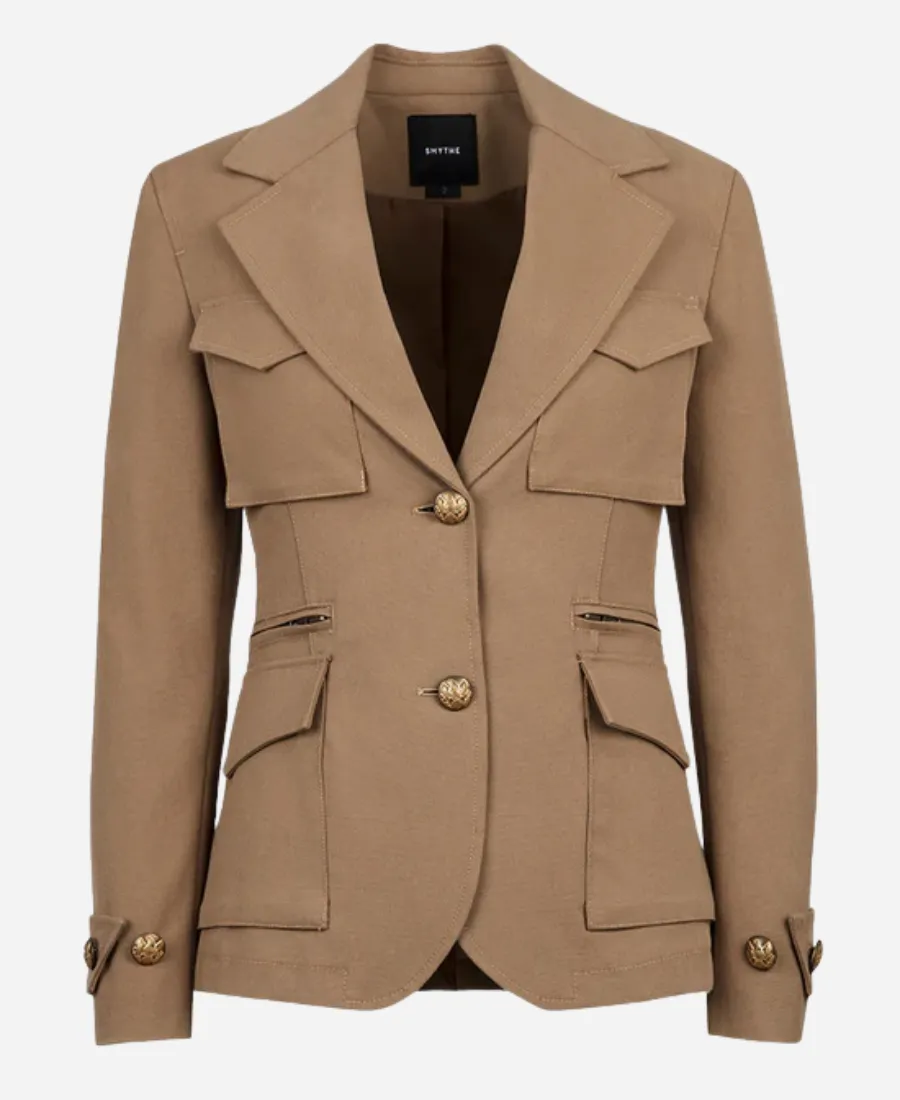 What makes this jacket truly appealing is its connection to the film’s tone and character styling. Ready or Not 2 continues the intense, high-stakes narrative of elite families competing for power, and Ursula Danforth’s wardrobe reflects that dominance and control. The khaki jacket, in particular, represents a blend of authority and understated style, making it a strong fashion statement without being overly flashy.